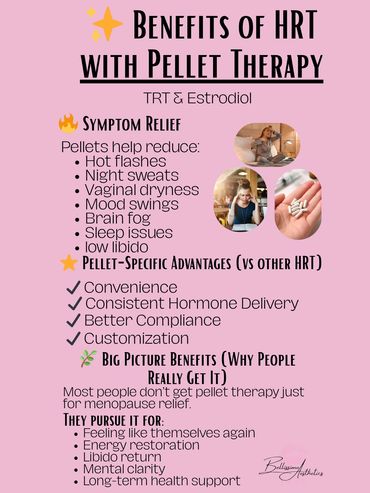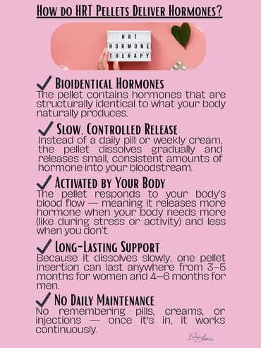 We offer Bioidentical Hormone Replacement Therapy (BHRT) using hormone pellets — a convenient, long-lasting solution for hormone imbalance in both women and men. Pellet therapy uses plant-derived hormones that are structurally identical to those your body naturally produces. Tiny pellets, about the size of a grain of rice, are inserted just under the skin during a quick in-office procedure. These pellets release a consistent, steady dose of hormones over several months.